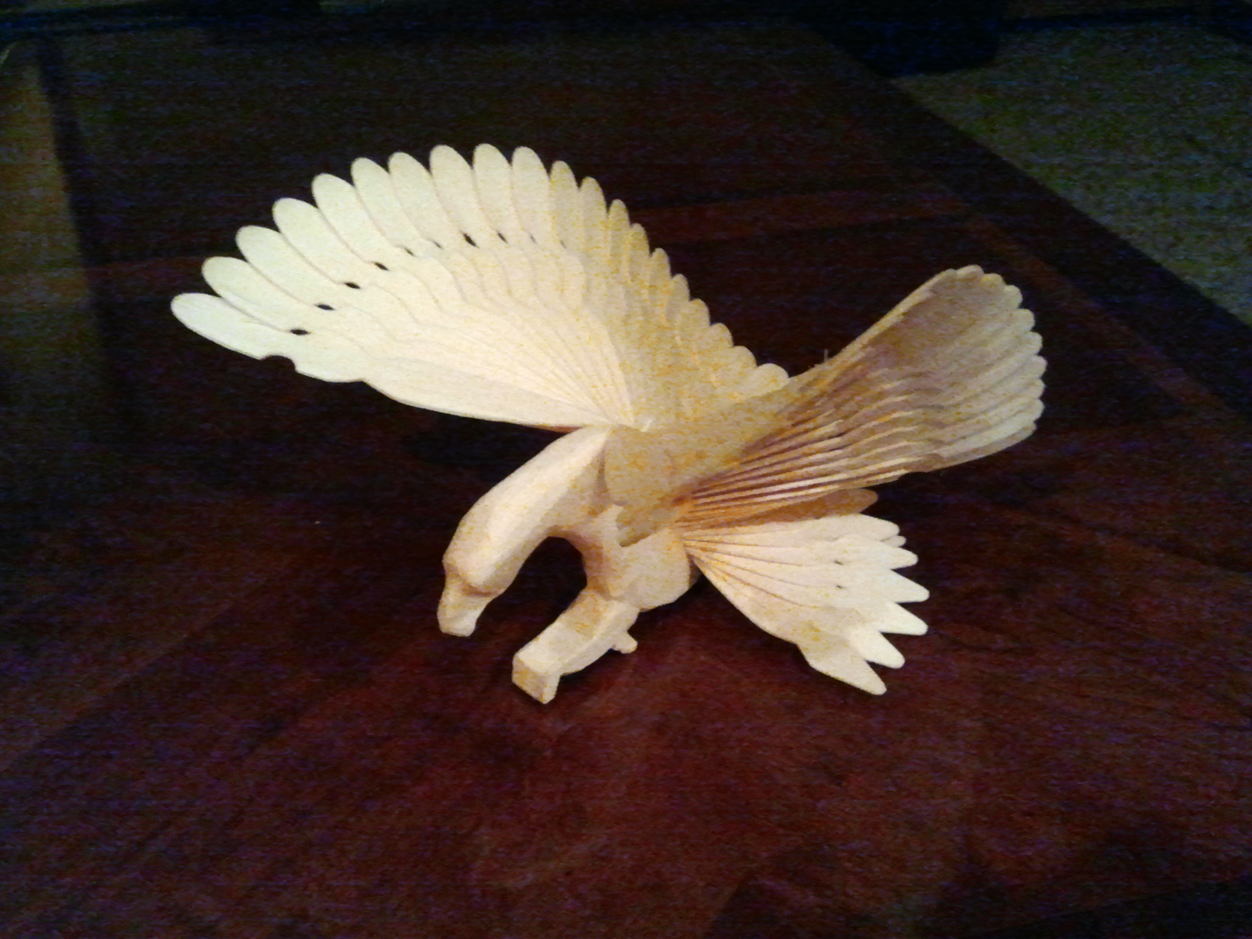 Bird made from Northern White Cedar-9″ wingspan, 6″ tall.