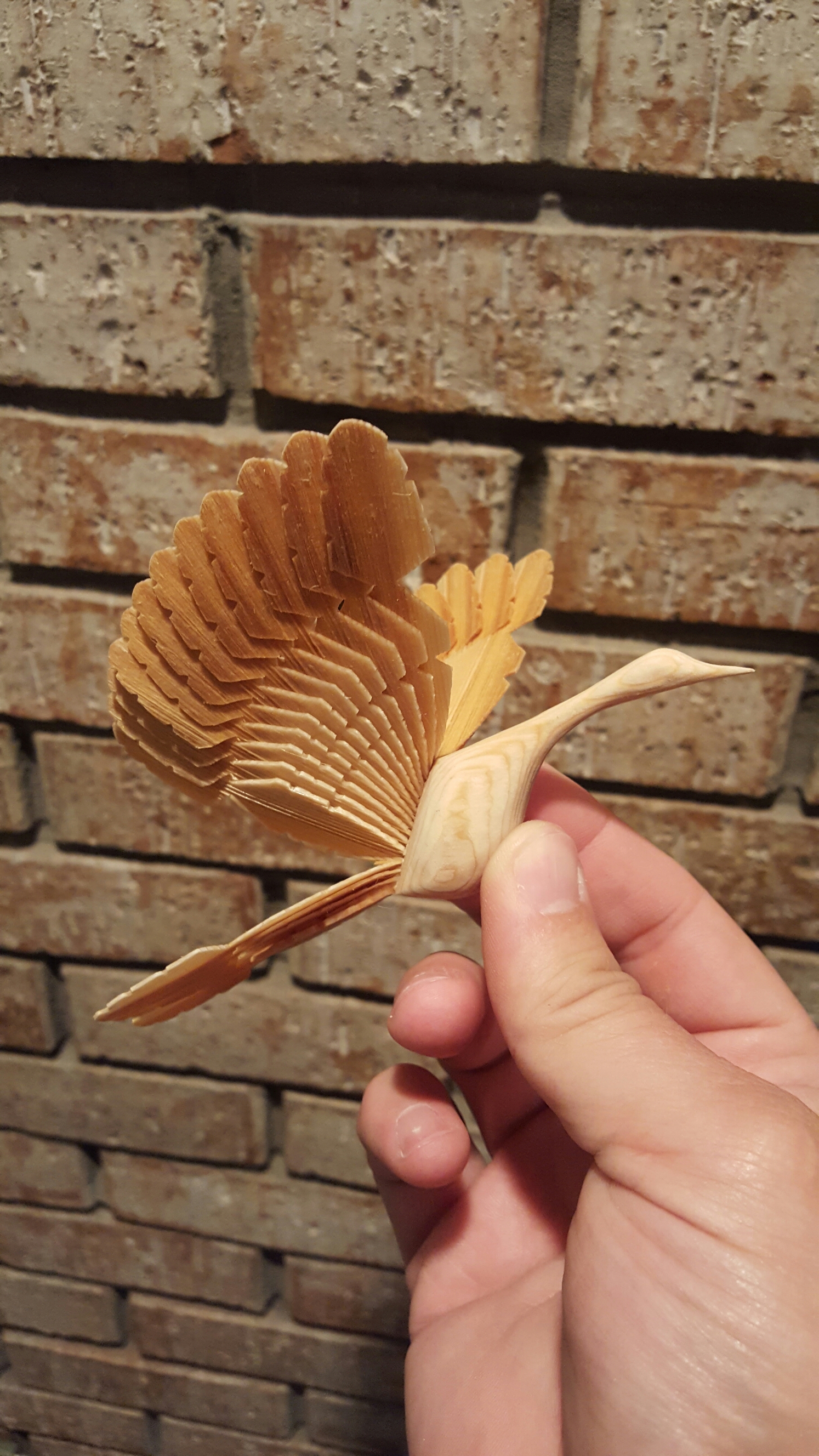 A nice little crane. Sometimes the wood doesn’t cooperate, but I always try to salvage something out of it.